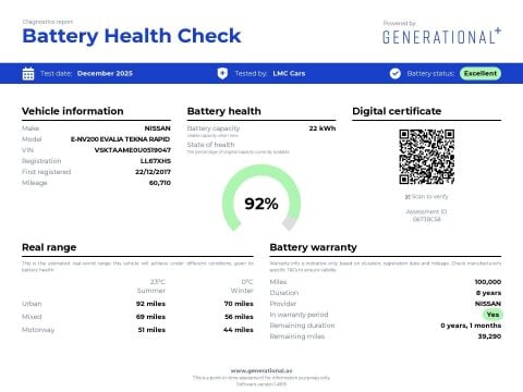 Nissan NV2002017 e-NV200 Evalia Tekna Rapid+ 5dr